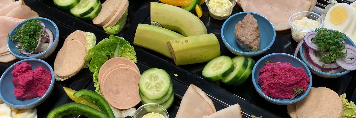 I hele institutionen serveres mad til "smør selv mad". Det består af rugbrød, fire-fem slags pålæg, grønt og en lille lun ret. Her øver vi med kniv og gaffel og smører vores egen mad.