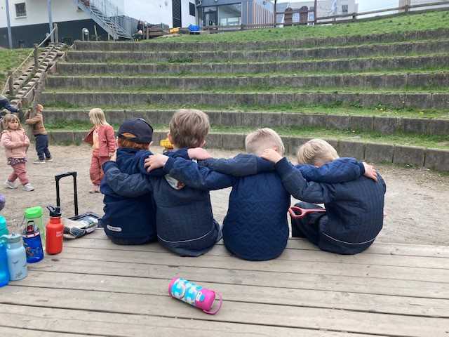 Vi arbejder løbende i de forskellige børnegrupper med materialer fra konceptet " FRI for mobberi". Det er blandt andet samtalekort, historier om mobning og massage-historier, hvor børnene skal massere hinanden. Vi har ligeledes haft emneuger om venskaber, været på biblioteket og lånt bøger om emnet og taler løbende med børnene om venskaber og eksklusioner.
